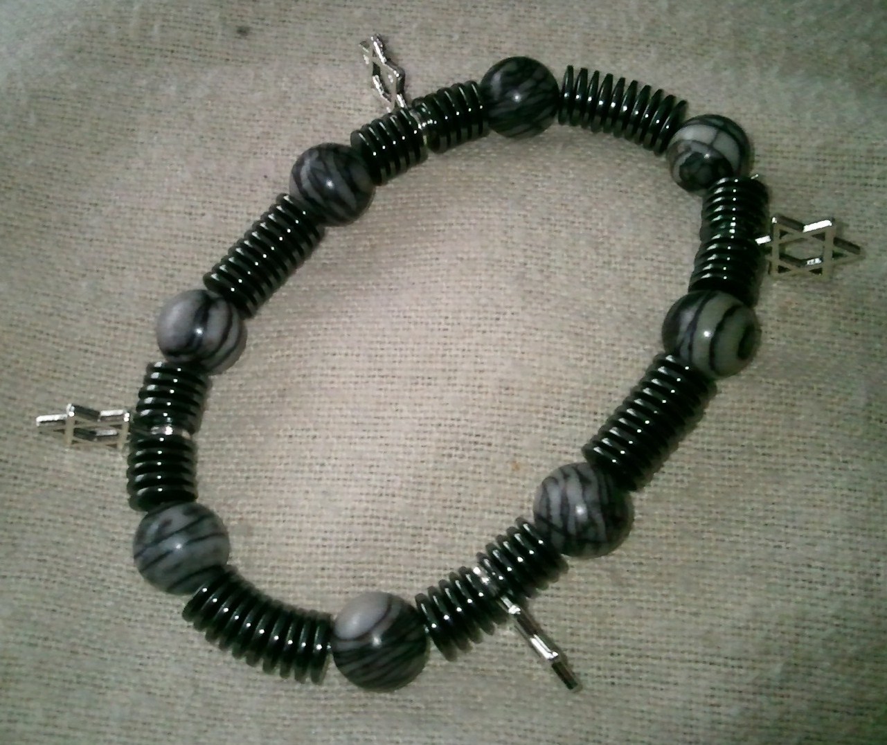 The coiled style braclet below can be made in the same way but with different coloured stone designs - matching accessories are available!